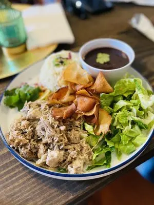 Stepping into Cuba 1918 in south San Antonio is like taking a nostalgic trip to Havana itself, thanks to its incredibly colorful decor. Their signature dish, “The Havana,” is a hearty and satisfying plate of roast pork, black beans, and white rice, served with a refreshing house salad.